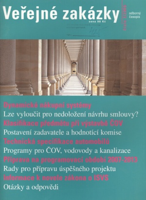 Časopis Veřejné zakázky je od roku 2003 tradiční odborné periodikum vycházející 6x ročně, které poskytuje důležité informace, novinky, rozhovory, fóra názorů a odborné texty v celé šíři problematiky veřejného zadávání.
