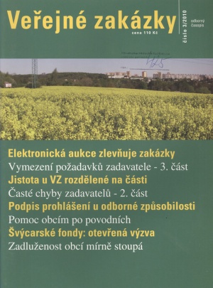 Časopis Veřejné zakázky je od roku 2003 tradiční odborné periodikum vycházející 6x ročně, které poskytuje důležité informace, novinky, rozhovory, fóra názorů a odborné texty v celé šíři problematiky veřejného zadávání.